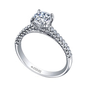 18K White Gold Ring With Round Cut Center Stone And Pavé bandAvailable In Multiple Total Carat Weights