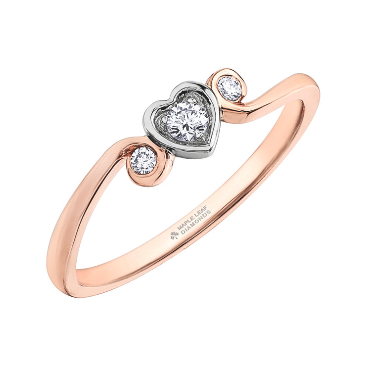 10K Rose And White Gold Ring With Round Cut Diamonds And Heart Details