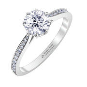 18K White Gold Ring With Round Cut Center Diamond And Round Cut Accent Micro Pavé Band Available In Multiple Total Carat Weights