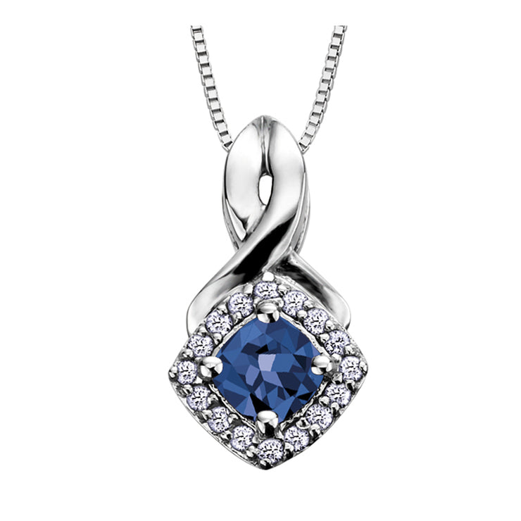 10K White Gold Pendant And Chain With Gemstone Center And Diamond Halo 0.08ct Total Stone Weight
