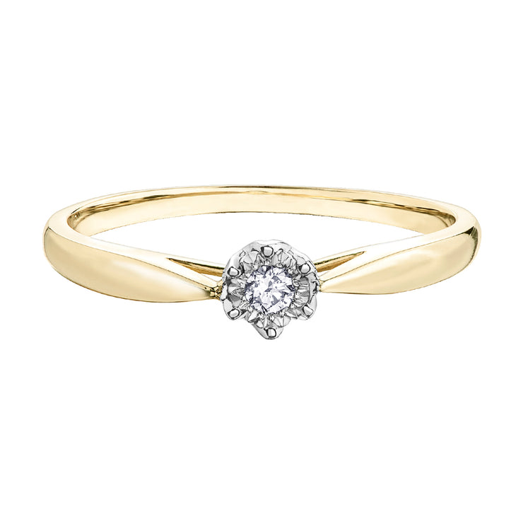 10K Yellow And White Gold Ring With Round Cut Diamond Center